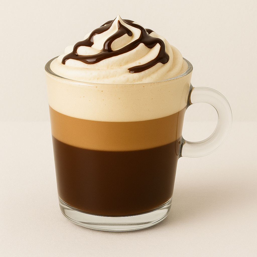 Doble dosis de café con chocolate amargo y leche cremosa.