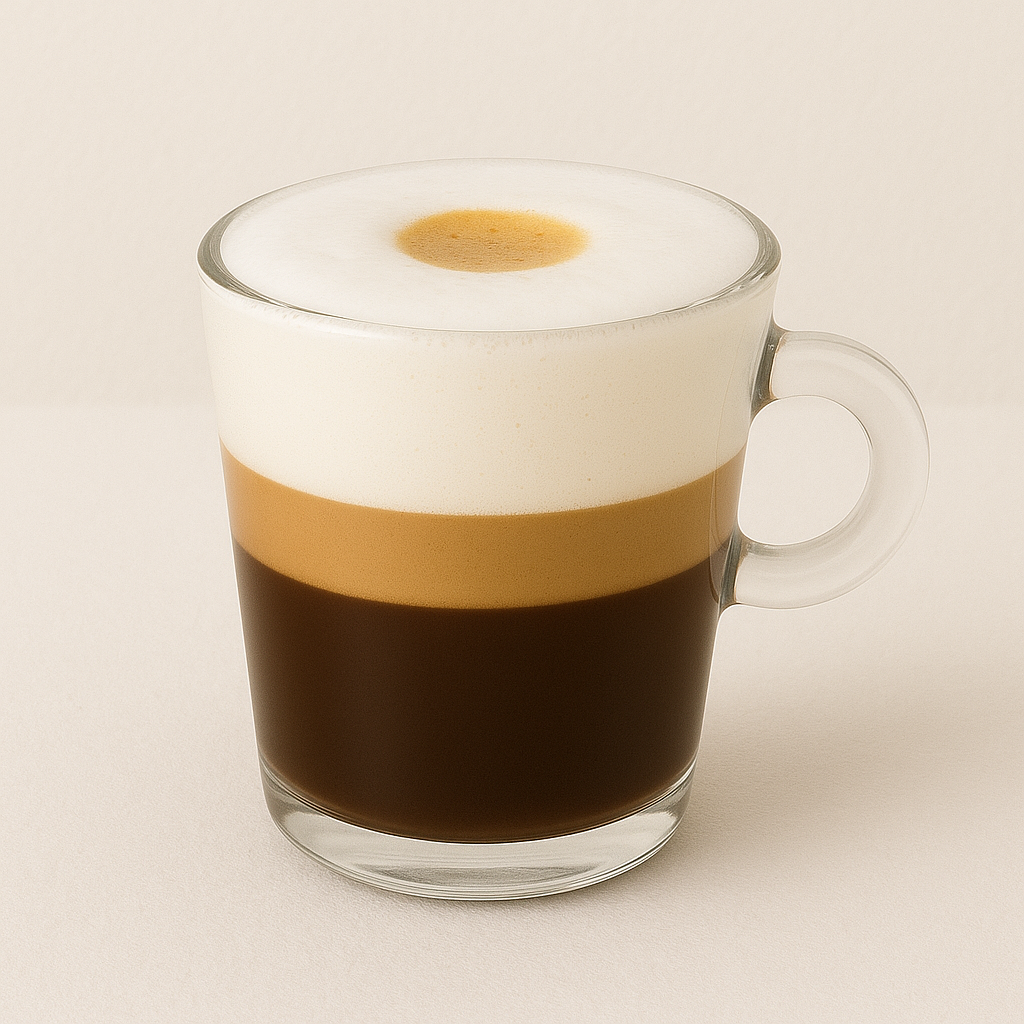 Expreso con un toque de leche caliente, sabor equilibrado.
